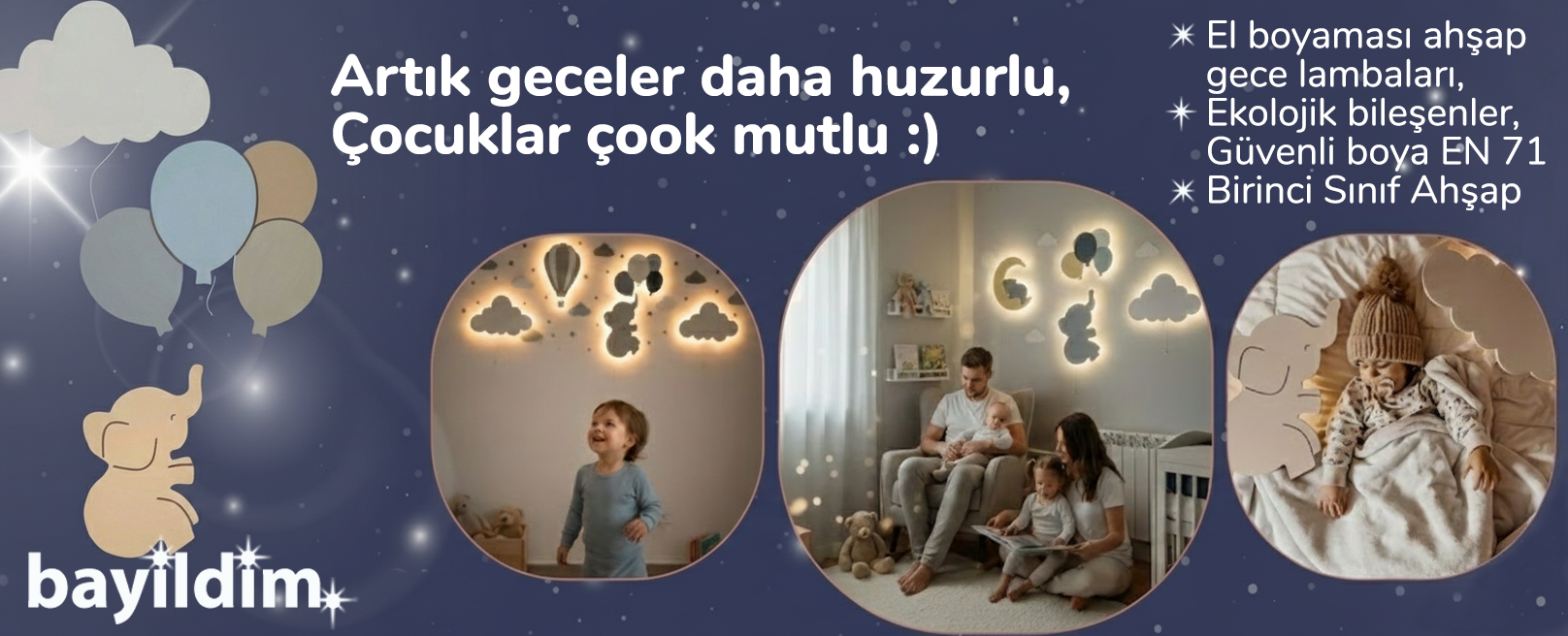 DEKORATİF BULUT GECE LAMBASI – Ahşap & Pilli & LED | Bayıldım